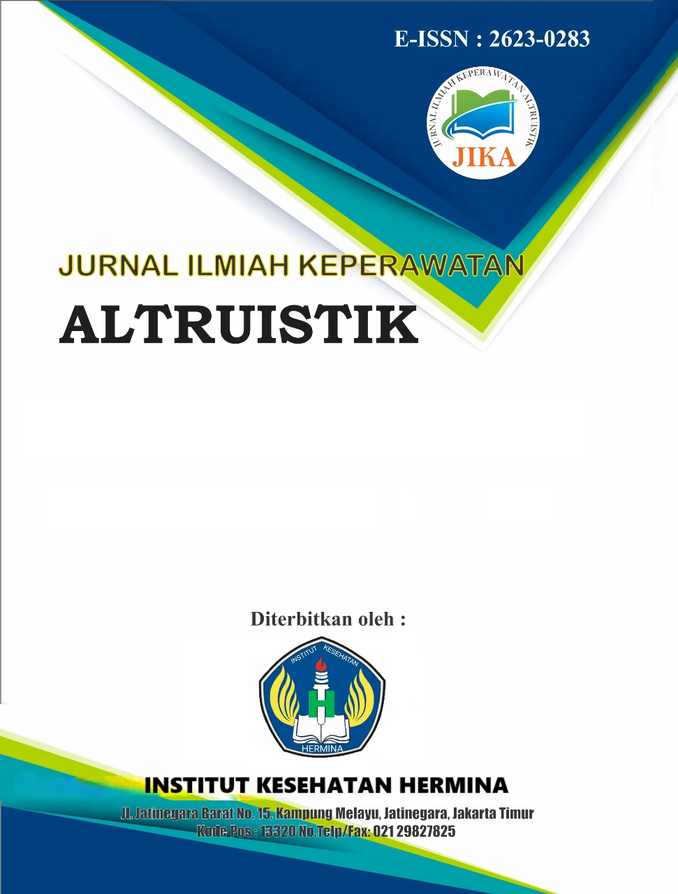 Jurnal Ilmiah Keperawatan Altruistik adalah Jurnal berkala yang diterbitkan oleh Institut Kesehatan Hermina, sebagai sarana interaksi dan komunikasi  serta memberikan informasi bagi pembaca di bidang ilmu keperawatan meliputi keperawatan anak, keperawatan medikal bedah, keperawatan gawat darurat, keperawatan jiwa, keperawatan gerontik, keperawatan maternitas, dan manajemen keperawatan.